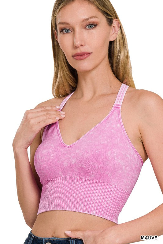 The Aria combines comfort and style with a criss cross back design that flatters every silhouette. Built-in padding provides gentle support and a smooth, seamless look under any outfit. The adjustable straps and soft fabric make it perfect for all-day wear, whether you're running errands or relaxing at home. A versatile essential that works as a standalone piece or layered under sheer tops. Available in colors Ice Blue, Ash Mocha, Kelly Green, Lt Plum, Mauve and Mocha.